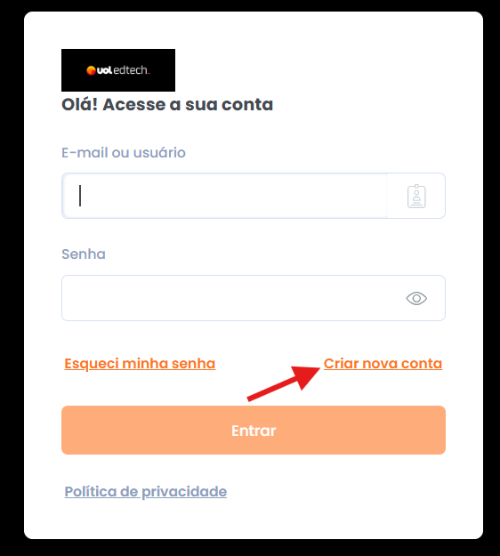 Algumas empresas podem permitir que um usuário final crie o seu próprio login na plataforma, através da opção Criar nova conta.