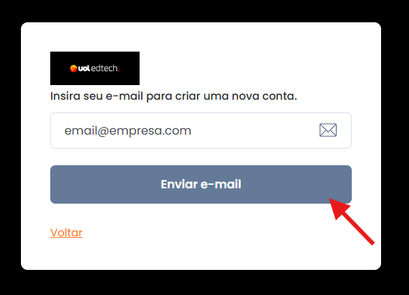 Também é necessário checar se na página de login da plataforma Learning.rocks da sua empresa aparece o botão Criar nova conta.