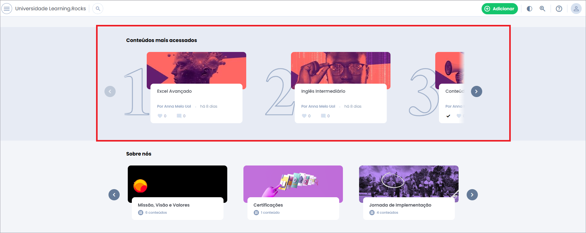 Nossos clientes utilizam esse bloco para dar destaque aos conteúdos de maior relevância para os usuários. O bloco poderá trazer conteúdos específicos ou todos os conteúdos de uma Seção ou Espaço, por exemplo.